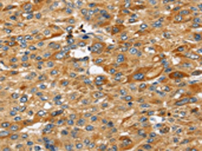 The image on the left is immunohistochemistry of paraffin-embedded Human liver cancer tissue using CSB-PA212583(STC2 Antibody) at dilution 1/25, on the right is treated with fusion protein. (Original magnification: ×200)