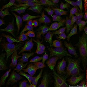 Immunofluorescence staining of methanol-fixed Hela cells using Stathmin 1(Ab-25) Antibody.