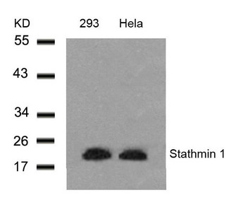 Western blot analysis of extracts from 293 and Hela cells using Stathmin 1(Ab-25) Antibody.