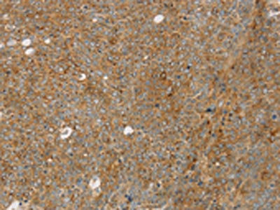The image on the left is immunohistochemistry of paraffin-embedded Human ovarian cancer tissue using CSB-PA560536(STX16 Antibody) at dilution 1/30, on the right is treated with fusion protein. (Original magnification: ×200)