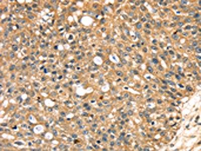 The image on the left is immunohistochemistry of paraffin-embedded Human liver cancer tissue using CSB-PA188001(STX18 Antibody) at dilution 1/20, on the right is treated with fusion protein. (Original magnification: ×200)