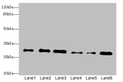Observed band size: 30 kDa -