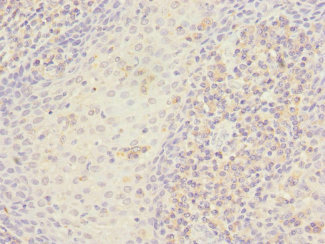 Immunohistochemistry of paraffin-embedded human tonsil tissue using CSB-PA022903DSR2HU at dilution of 1:100
