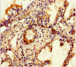 Immunohistochemistry of paraffin-embedded human lung tissue using CSB-PA814217LA01HU at dilution of 1:100