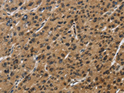 The image on the left is immunohistochemistry of paraffin-embedded Human liver cancer tissue using CSB-PA285442(SYN1 Antibody) at dilution 1/50, on the right is treated with synthetic peptide. (Original magnification: ×200)