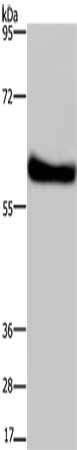 Gel: 6%SDS-PAGE, Lysate: 40 μg, Lane: Mouse brain tissue, Primary antibody: CSB-PA553180(SYN2 Antibody) at dilution 1/250, Secondary antibody: Goat anti rabbit IgG at 1/8000 dilution, Exposure time: 3 minutes