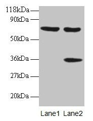 Observed band size: 70, 36 kDa -
