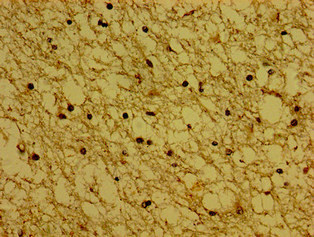 Immunohistochemistry of paraffin-embedded human brain tissue using CSB-PA023023LA01HU at dilution of 1:100