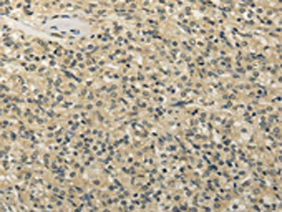 The image on the left is immunohistochemistry of paraffin-embedded Human prostate cancer tissue using CSB-PA945697(TBC1D22A Antibody) at dilution 1/20, on the right is treated with fusion protein. (Original magnification: ×200)