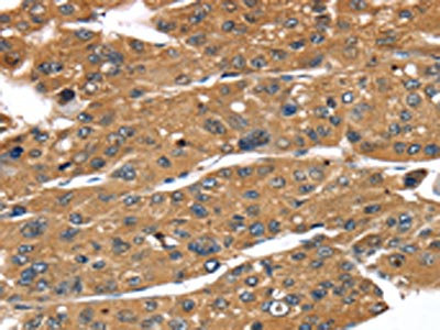 The image on the left is immunohistochemistry of paraffin-embedded Human liver cancer tissue using CSB-PA199259(TBX10 Antibody) at dilution 1/35, on the right is treated with fusion protein. (Original magnification: ×200)