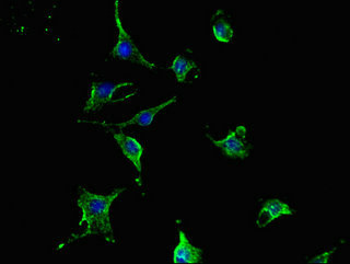 Immunofluorescent analysis of U251 cells using CSB-PA023318LA01HU at dilution of 1:100 and Alexa Fluor 488-congugated AffiniPure Goat Anti-Rabbit IgG(H+L)
