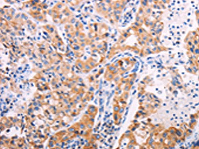 The image on the left is immunohistochemistry of paraffin-embedded Human lung cancer tissue using CSB-PA108827(TEKT4 Antibody) at dilution 1/20, on the right is treated with fusion protein. (Original magnification: ×200)