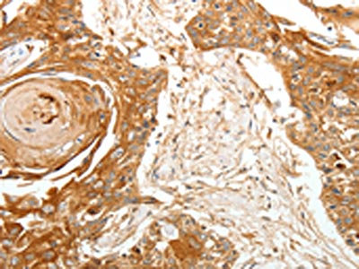 The image on the left is immunohistochemistry of paraffin-embedded Human esophagus cancer tissue using CSB-PA257364(TERT Antibody) at dilution 1/40, on the right is treated with synthetic peptide. (Original magnification: ×200)