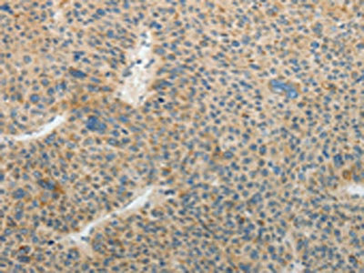 The image on the left is immunohistochemistry of paraffin-embedded Human liver cancer tissue using CSB-PA447714(TFPI2 Antibody) at dilution 1/25, on the right is treated with fusion protein. (Original magnification: ×200)