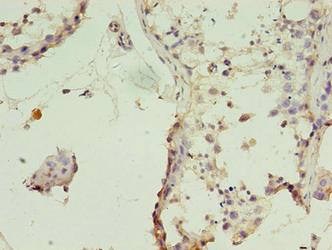 Immunohistochemistry of paraffin-embedded human testis tissue using CSB-PA896532LA01HU at dilution of 1:100