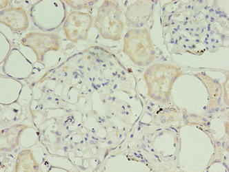 Immunohistochemistry of paraffin-embedded human kidney tissue using CSB-PA896532LA01HU at dilution of 1:100
