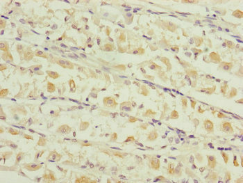 Immunohistochemistry of paraffin-embedded human gastric cancer using CSB-PA023551ESR2HU at dilution of 1:100