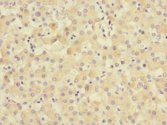 Immunohistochemistry of paraffin-embedded human liver tissue using CSB-PA674736ESR2HU at dilution of 1:100