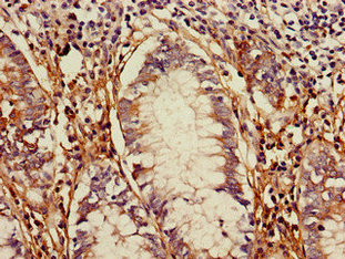 Immunohistochemistry of paraffin-embedded human colon cancer using CSB-PA023604LA01HU at dilution of 1:100