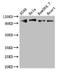 Positive WB detected in: A549 whole cell lysate, Hela whole cell lysate, RAW264.7 whole cell lysate, Mouse heart tissue
