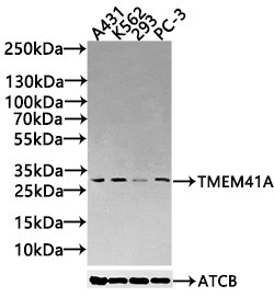 All lanes: TMEM41A antibody at 1:1000