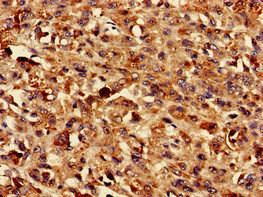 Immunohistochemistry of paraffin-embedded human melanoma using CSB-PA023840LA01HU at dilution of 1:100