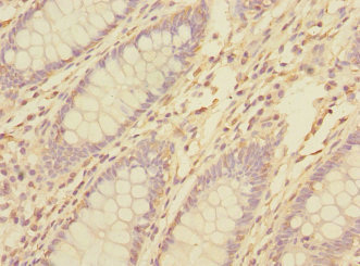Immunohistochemistry of paraffin-embedded human colon cancer using CSB-PA023960ESR2HU at dilution of 1:100