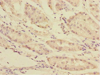 Immunohistochemistry of paraffin-embedded human gastric cancer using CSB-PA617901ESR2HU at dilution of 1:100