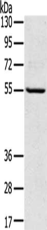 Gel: 8%SDS-PAGE, Lysate: 40 μg, Lane: Huvec cells, Primary antibody: CSB-PA917997(TPH2 Antibody) at dilution 1/300, Secondary antibody: Goat anti rabbit IgG at 1/8000 dilution, Exposure time: 1 minute