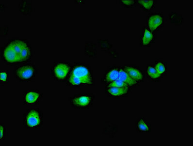 Immunofluorescent analysis of MCF-7 cells using CSB-PA024116LA01HU at dilution of 1:100 and Alexa Fluor 488-congugated AffiniPure Goat Anti-Rabbit IgG(H+L)