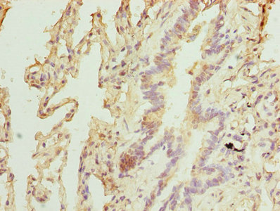 Immunohistochemistry of paraffin-embedded human lung tissue using CSB-PA896710LA01HU at dilution of 1:100