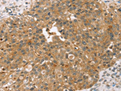 The image on the left is immunohistochemistry of paraffin-embedded Human esophagus cancer tissue using CSB-PA250093(TPST2 Antibody) at dilution 1/35, on the right is treated with synthetic peptide. (Original magnification: ×200)