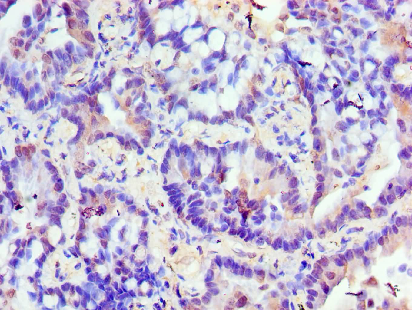 Immunohistochemistry of paraffin-embedded human colon cancer using CSB-PA024464ESR2HU at dilution of 1:100