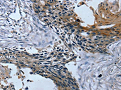 The image on the left is immunohistochemistry of paraffin-embedded Human esophagus cancer tissue using CSB-PA587272(TRIM31 Antibody) at dilution 1/20, on the right is treated with fusion protein. (Original magnification: ×200)