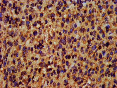 IHC image of CSB-PA892166LA01HU diluted at 1:400 and staining in paraffin-embedded human glioma performed on a Leica BondTM system. After dewaxing and hydration, antigen retrieval was mediated by high pressure in a citrate buffer (pH 6.0). Section was blocked with 10% normal goat serum 30min at RT. Then primary antibody (1% BSA) was incubated at 4°C overnight. The primary is detected by a biotinylated secondary antibody and visualized using an HRP conjugated SP system.