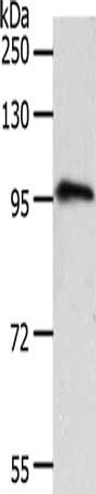 Gel: 8%SDS-PAGE, Lysate: 40 μg, Lane: Human fetal brain tissue, Primary antibody: CSB-PA597518(TRPC3 Antibody) at dilution 1/1600, Secondary antibody: Goat anti rabbit IgG at 1/8000 dilution, Exposure time: 2 minutes