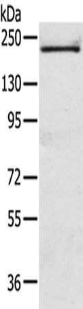 Gel: 6%SDS-PAGE,Lysate: 40 μg,,Primary antibody: CSB-PA980506(TSC2 Antibody) at dilution 1/200 dilution,Secondary antibody: Goat anti rabbit IgG at 1/8000 dilution,Exposure time: 5 minutes