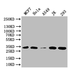 Positive WB detected in: MCF7 whole cell lysate, Hela whole cell lysate, A549 whole cell lysate, JK whole cell lysate, 293 whole cell lysate