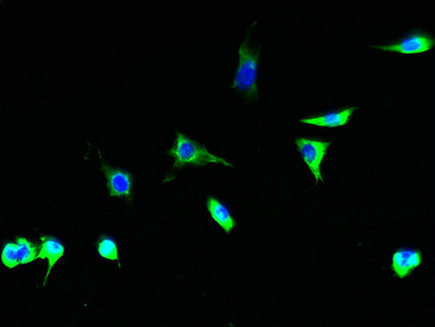 Immunofluorescent analysis of Hela cells using CSB-PA00935A0Rb at dilution of 1:100 and Alexa Fluor 488-congugated AffiniPure Goat Anti-Rabbit IgG(H+L)