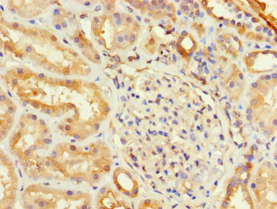 Immunohistochemistry of paraffin-embedded human kidney tissue using CSB-PA00935A0Rb at dilution of 1:100
