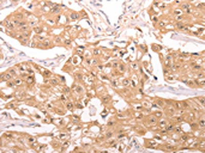 The image on the left is immunohistochemistry of paraffin-embedded Human esophagus cancer tissue using CSB-PA281213(TXN Antibody) at dilution 1/20, on the right is treated with synthetic peptide. (Original magnification: ×200)