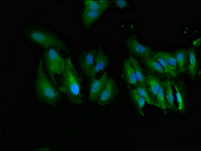 Immunofluorescent analysis of Hela cells using CSB-PA025582LA01HU at dilution of 1:100 and Alexa Fluor 488-congugated AffiniPure Goat Anti-Rabbit IgG(H+L)