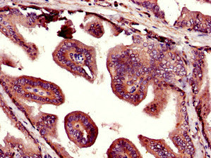 Immunohistochemistry of paraffin-embedded human prostate tissue using CSB-PA840554LA01HU at dilution of 1:100