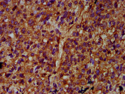 IHC image of CSB-PA811629LA01HU diluted at 1:400 and staining in paraffin-embedded human glioma performed on a Leica BondTM system. After dewaxing and hydration, antigen retrieval was mediated by high pressure in a citrate buffer (pH 6.0). Section was blocked with 10% normal goat serum 30min at RT. Then primary antibody (1% BSA) was incubated at 4°C overnight. The primary is detected by a biotinylated secondary antibody and visualized using an HRP conjugated SP system.