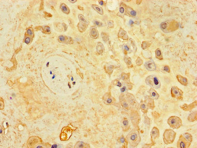 Immunohistochemistry of paraffin-embedded human placenta tissue using CSB-PA603875LA01HU at dilution of 1:100