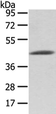Gel: 8%SDS-PAGE, Lysate: 40 μg, Lane: Mouse heart tissue, Primary antibody: CSB-PA562311(VASH1 Antibody) at dilution 1/400 dilution, Secondary antibody: Goat anti rabbit IgG at 1/8000 dilution, Exposure time: 10 seconds
