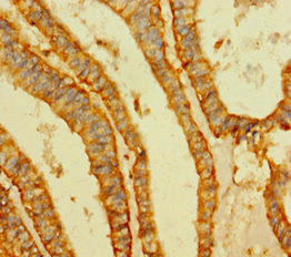 Immunohistochemistry of paraffin-embedded human endometrial cancer using CSB-PA025857LA01HU at dilution of 1:100