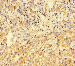 Immunohistochemistry of paraffin-embedded human lung cancer using CSB-PA025857LA01HU at dilution of 1:100