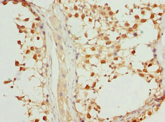 Immunohistochemistry of paraffin-embedded human testis tissue using CSB-PA857466DSR1HU at dilution of 1:100