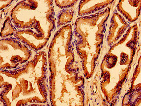 Immunohistochemistry of paraffin-embedded human prostate tissue using CSB-PA896509LA01HU at dilution of 1:100